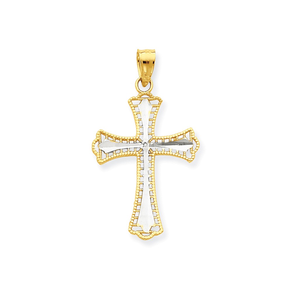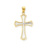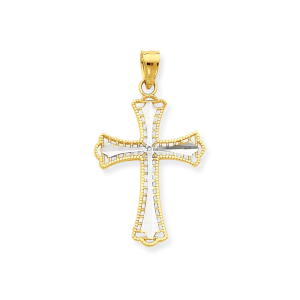 10k & Rhodium Diamond-Cut Cross Pendant