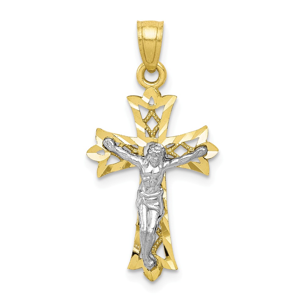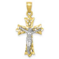10k & Rhodium Filigree Crucifix Pendant