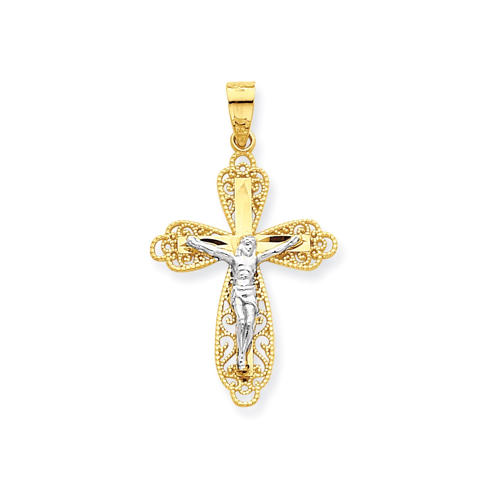 10k & Rhodium Filigree Crucifix Pendant