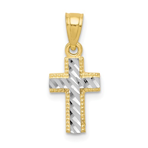 10k & Rhodium Tiny Diamond-Cut Cross Pendant