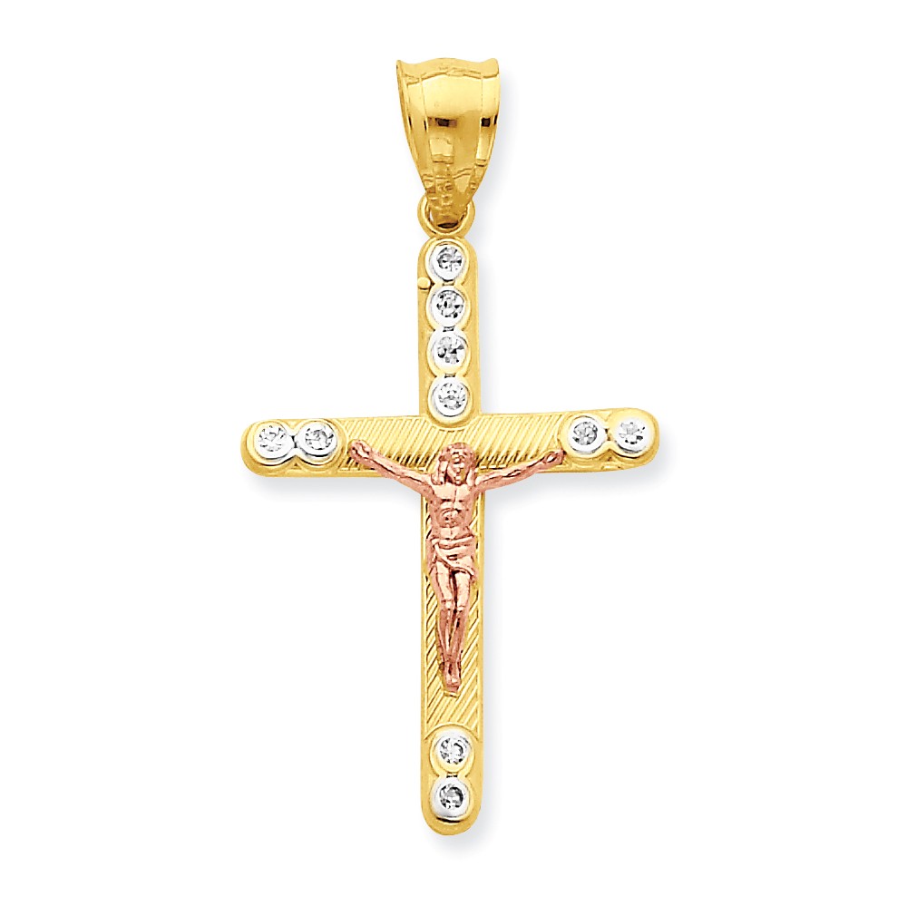 10k Two-tone CZ Crucifix Pendant