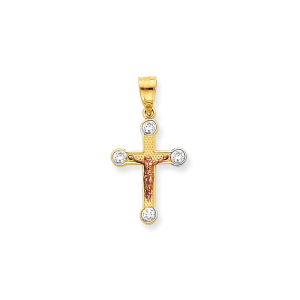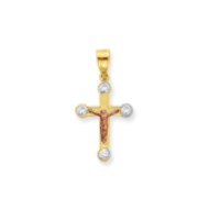 10k Two-tone Small CZ Crucifix Pendant