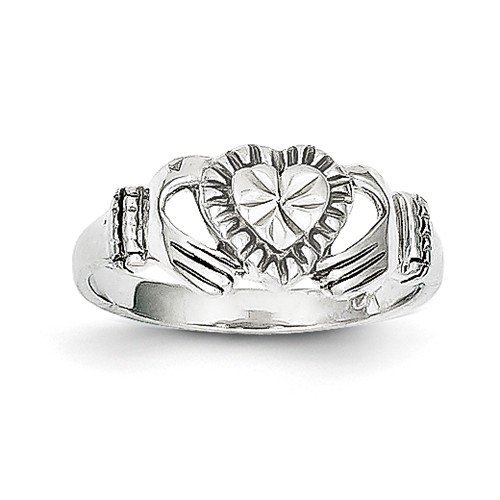 This ring is a 10k White Gold Polished Claddagh Ring and weighs 1.6 grams.