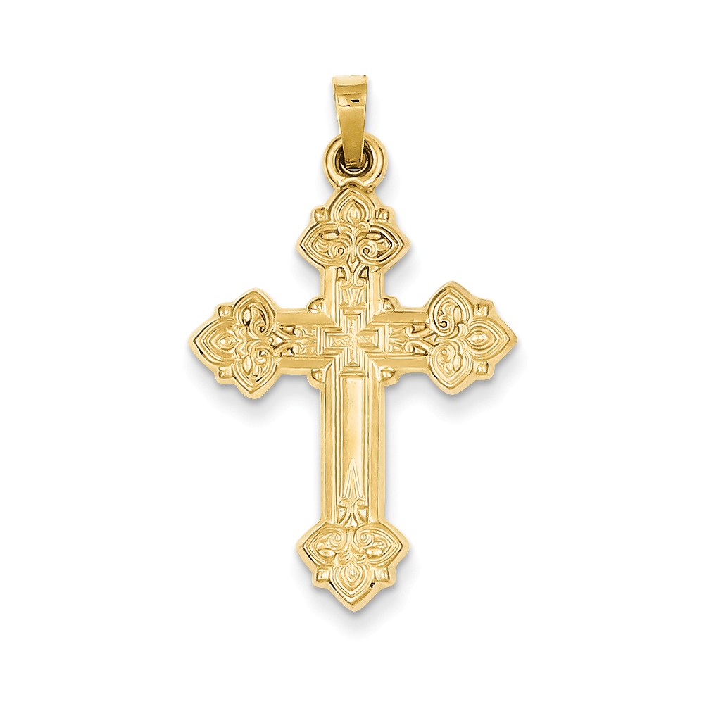 14k Budded Hollow Cross Pendant