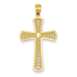 14k Diamond-cut Filigree Cross Pendant