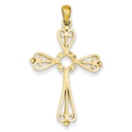 14k Fleur De Lis Polished Cross Pendant
