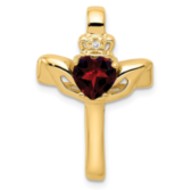 14k Garnet & AA Diamond Claddagh Cross Pendant