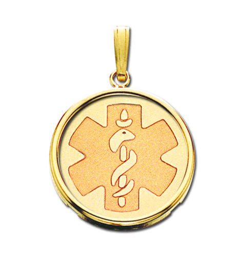 14k Yellow Gold Medical ID Round Bezel Frame Charm or Pendant