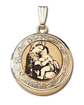 Solid 14k Yellow Gold Blessed Mother Round Photo Locket