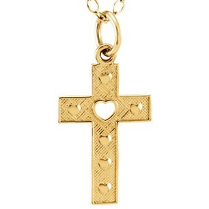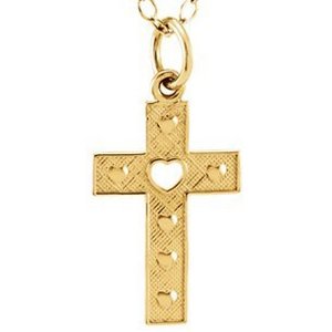 14K Yellow Gold Children's Cross W/Heart Pendant