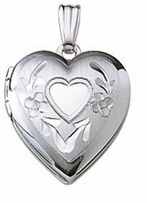 14k White Gold Small Heart Photo Locket