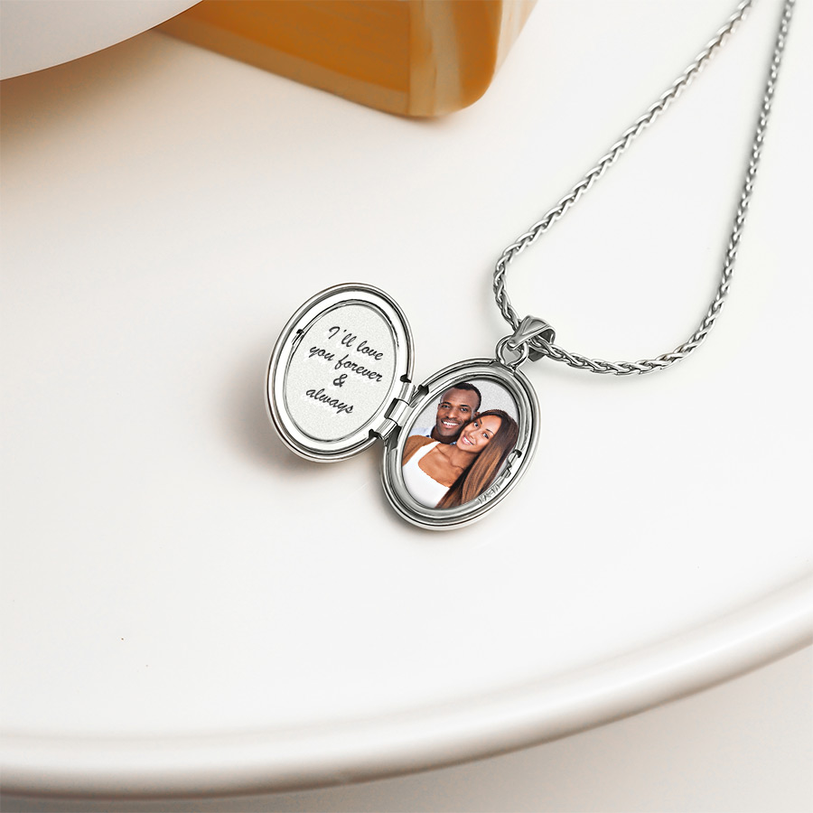 Your locket can have a picture permanently lasered inside or a photo print that fits perfectly. Alternatively you can also add your own photo prints at home.