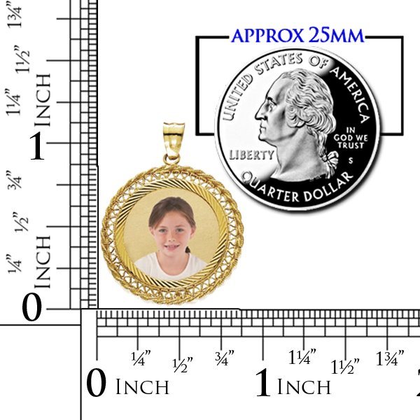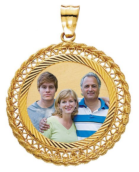 14k Yellow Gold Filegre Round Photo Pendant