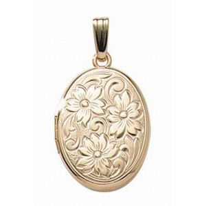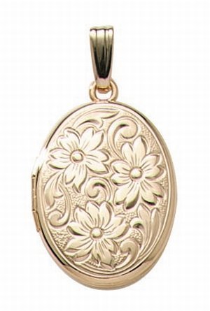 14k Gold Filled Floral Oval Photo Locket