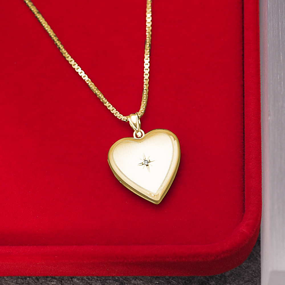 Yellow Gold Heart Photo Locket with Genuine Diamond