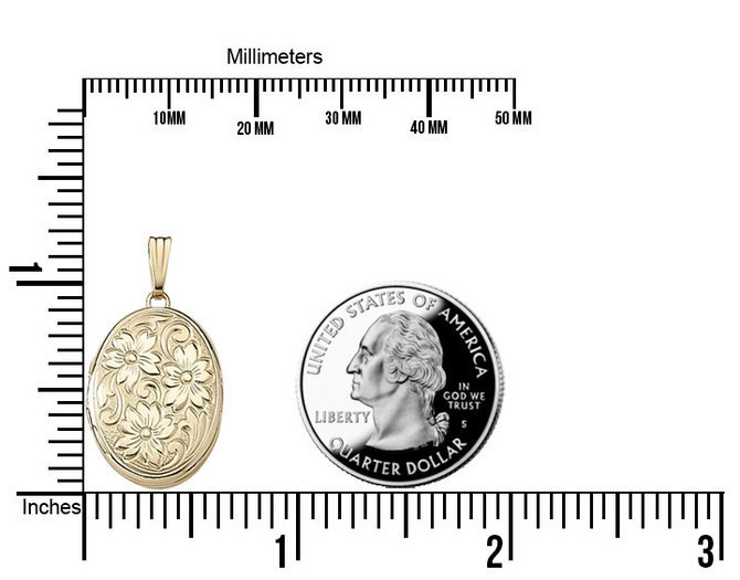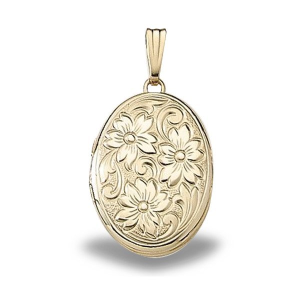 Solid 14K Yellow Gold Floral Oval Photo Locket