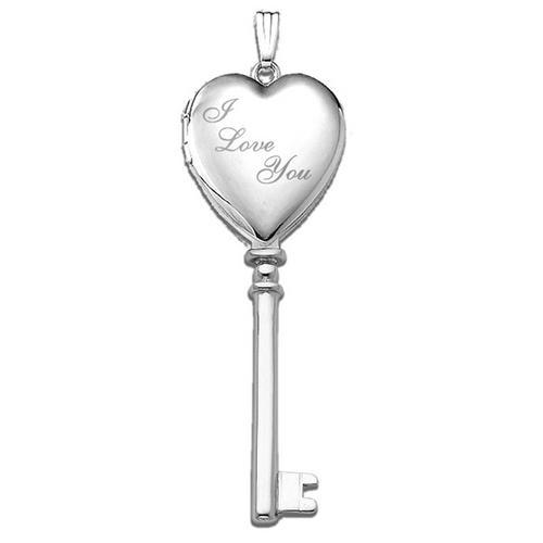 14k White Gold I Love You Key Heart Photo Locket