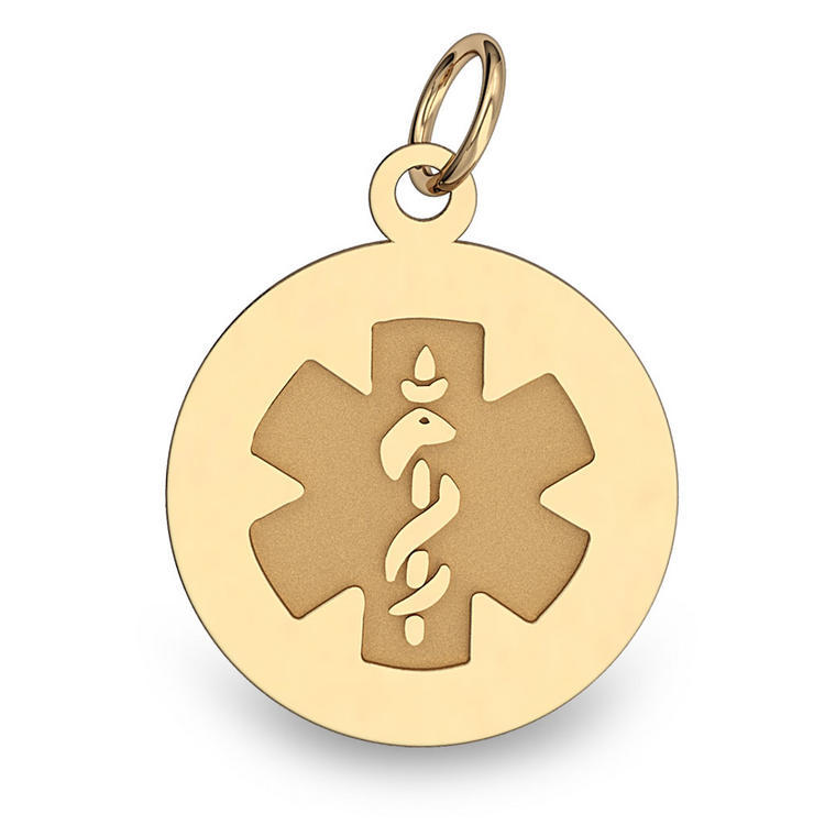 14k Yellow Gold Medical ID Round Charm or Pendant