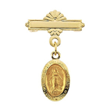 14K Gold Miraculous Religious Medal Baptismal Brooch