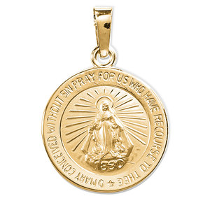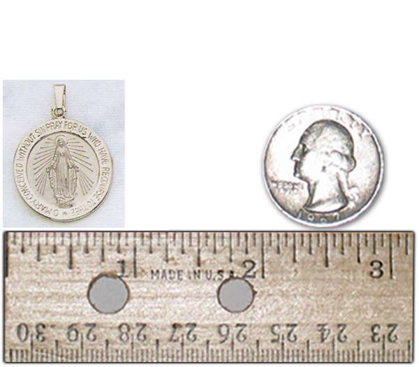 "I've purchased two Miraculous Medals from you at different times. Both times I've been highly satisfied. They came when expected and there were no hidden costs. Actually look so much better than pictures on site. No photo does jewelry any justice. The recent one I got was in sterling silver. I bought it for a friend for Mothers Day as she keeps admiring the one I always wear. Won't she be surprised. Thank you for your meticulous work in creating this fine jewelry."