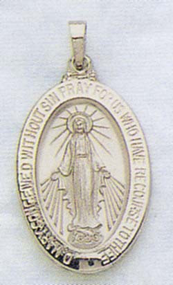 "I've purchased two Miraculous Medals from you at different times. Both times I've been highly satisfied. They came when expected and there were no hidden costs. Actually look so much better than pictures on site. No photo does jewelry any justice. The recent one I got was in sterling silver. I bought it for a friend for Mothers Day as she keeps admiring the one I always wear. Won't she be surprised. Thank you for your meticulous work in creating this fine jewelry."