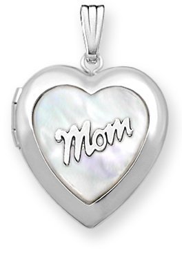 14k White Gold Mother Of Pearl Heart Photo Locket