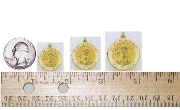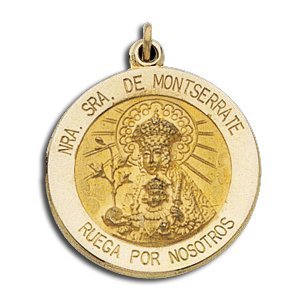 This 14K Solid Gold medal is of the Miraculous image venerated since 1225 in the Benedictine monastery near Barcelona, Spain