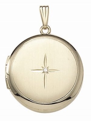 Solid 14k Yellow Gold Round Photo Locket with Diamond