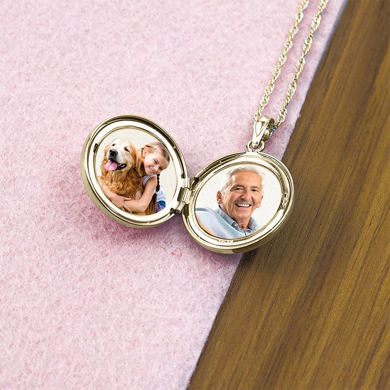 Your locket can have a picture permanently lasered inside or a photo print that fits perfectly. Alternatively you can also add your own photo prints at home.