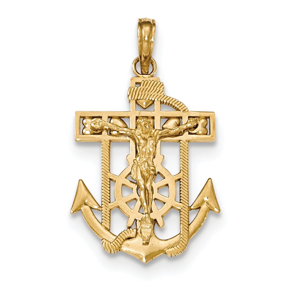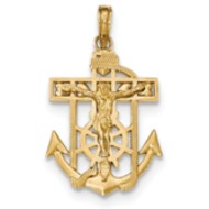 14K Gold Polished & Textured Mini Mariners Crucifix Pendant