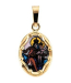 This Scapular Medal is Hand Painted Porcelain that is then fired and set in a 14K Solid Gold frame.