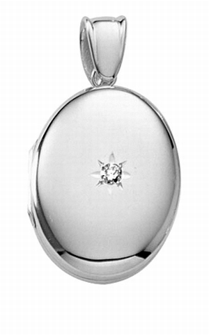 14k White Gold Premium Oval Locket with Diamonds