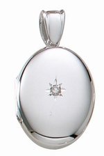 14k White Gold Premium Oval Photo Locket with Diamond