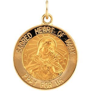 This Sacred Heart of Mary medal is in all 14K Solid Yellow Gold.