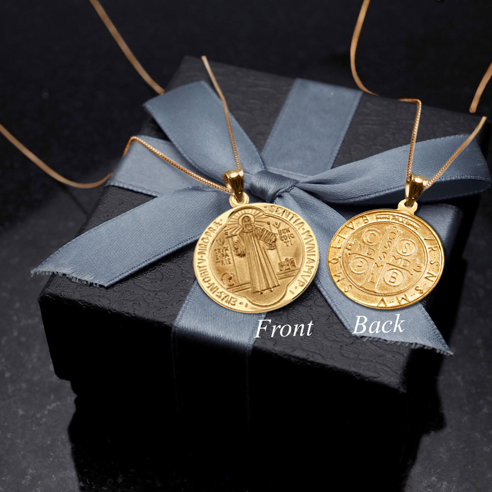 14K Yellow Gold Saint Benedict Hollow Jubilee Religious Medal