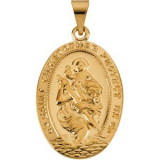 Saint Christopher is the most popular saint medal worn by travelers. This handsome Solid 14K Gold medal is oval and is 25mm x 17.5mm this medal has a high polish finish. St. Christopher is the patron saint of athletes, porters, sailors and travelers.