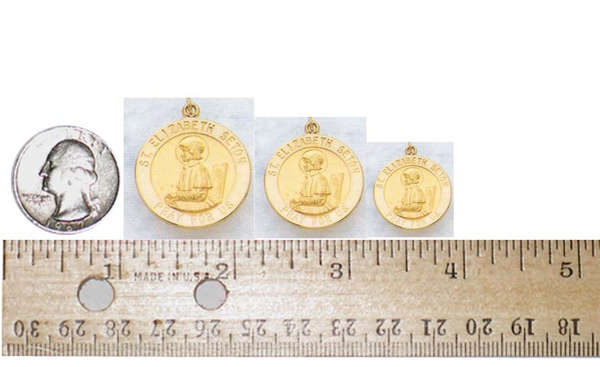 This 14K Solid Gold Medal is of Saint Elizabeth Seton (January 4th) St. Elizabeth Seton is the patron saint for the loss of parents.