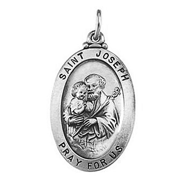 This Solid Saint Joseph Medal is in a oval shape. Saint Joseph Mary's husband and Foster father to Jesus. Saint Joseph day is March 19th. St. Joseph is the patron saint of carpenters, workers, the dying, universal church, China and Peru.