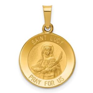 This Solid 14K Gold Saint Lucy medal is worn by people with eye trouble.