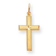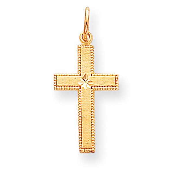 14k Gold Satin w/ Diamond Cut Edge Cross Pendant