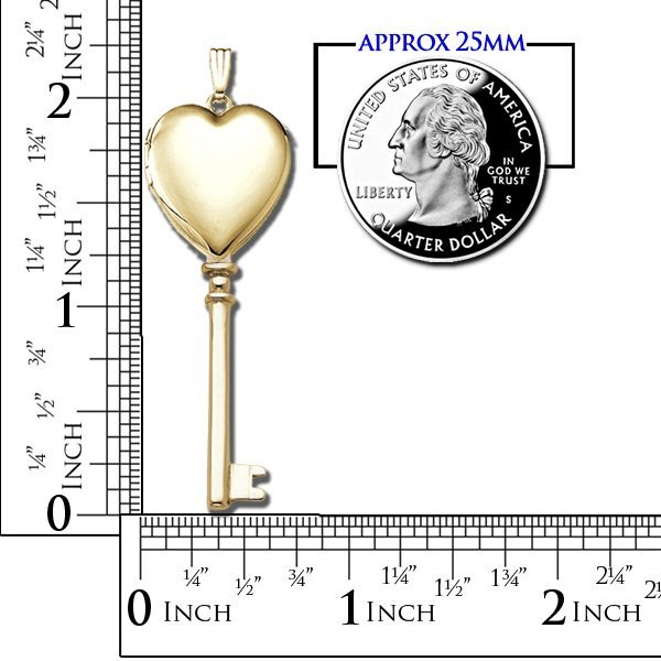 Solid 14K Yellow Gold Key Heart Photo Locket