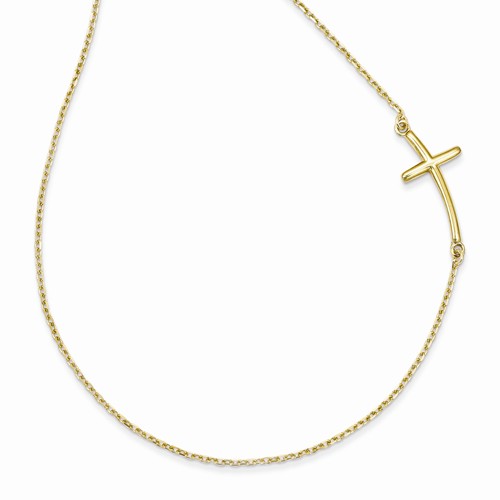 This beautiful 14K Yellow Gold Sideway Cross necklace comes with an 19 inch necklace.