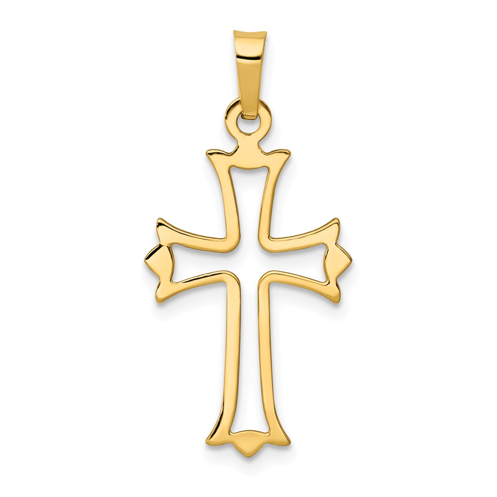 14k Polished Cut-out Fleur de Lis Cross Pendant