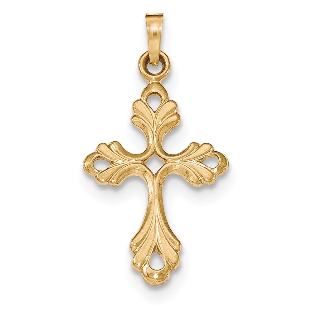 14k Polished Fleur De Lis Cross Pendant