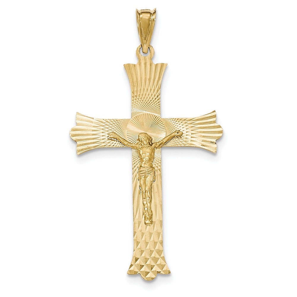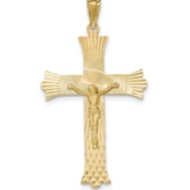 14k Polished, Satin and Diamond-cut Crucifix Cross Pendant