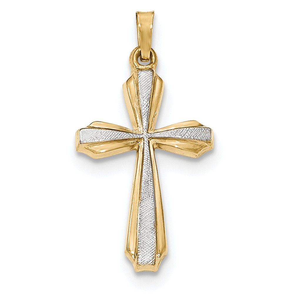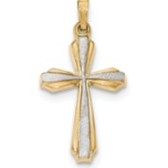 14K with Rhodium Textured and Polished Passion Cross Pendant