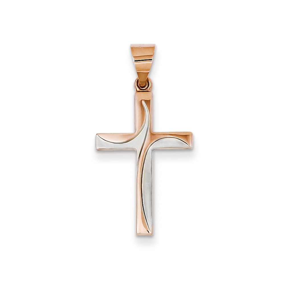 14k Rose Gold Rhodium Hollow Cross Pendant
