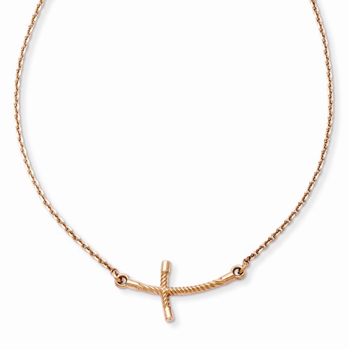14K Rose Gold Small Sideways Curved Twist Cross Necklace