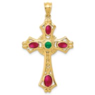 14k Ruby & Emerald Cabochon Cross Pendant