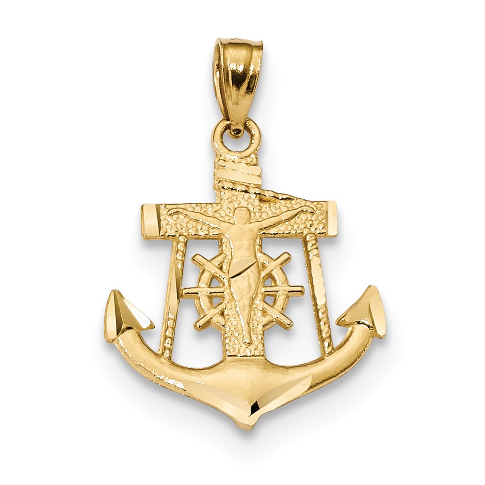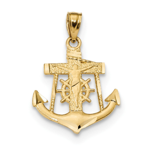 14k Satin Diamond-cut Anchor w/Crucifix Pendant